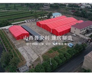 山西晉安利篷房制造有限公司,位于山西省太原市。我們專(zhuān)注設(shè)計(jì)、生產(chǎn)、制造、銷(xiāo)售、租賃各種跨度、尺寸的篷房。根據(jù)用戶(hù)要求提供訂制服務(wù)。 我們從一個(gè)小作坊起步,發(fā)展成為篷房、展覽設(shè)備的生產(chǎn)廠家,起初的產(chǎn)品主要用于戶(hù)外婚禮、房產(chǎn)奠基促銷(xiāo)、汽車(chē)展、服裝展、啤酒節(jié)、音樂(lè)節(jié)等各種展會(huì)、會(huì)展、會(huì)議會(huì)務(wù)活動(dòng),我們以質(zhì)量和服務(wù)贏得了客戶(hù)的信任。 此外,我們還為制造業(yè)、物流業(yè)、商品流通業(yè),建設(shè)戶(hù)外裝配式店鋪、臨時(shí)倉(cāng)庫(kù),裝配式體育館,臨時(shí)廠房等。 除了生產(chǎn)制造外,我們還維修所有篷房配件,如各種厚度、不同尺寸的頂布、邊布、扣眼釘、拉繩、拉鏈等,凡本公司的產(chǎn)品用戶(hù)均可享受篷布免費(fèi)維修。